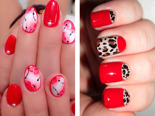 You can give complete freedom of imagination and come up with the most unusual drawings, leaving a bright scarlet as a basis.