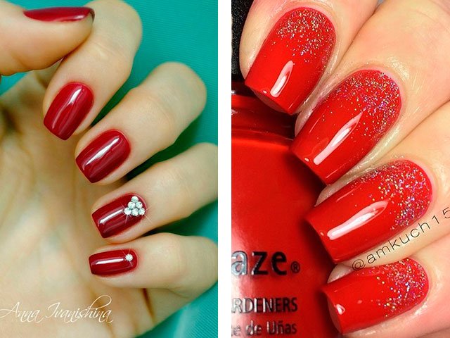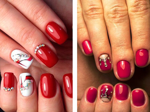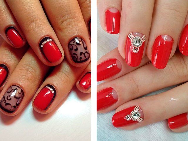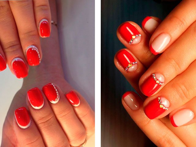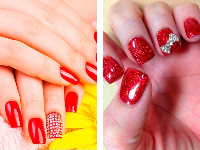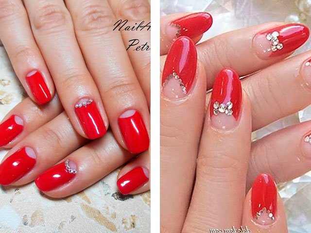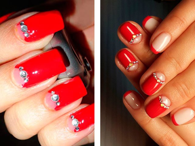 - 2 Modern ideas of red manicure with rhinestones