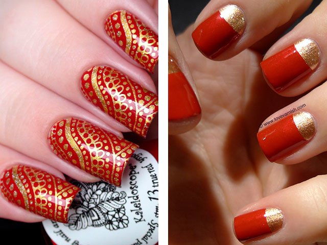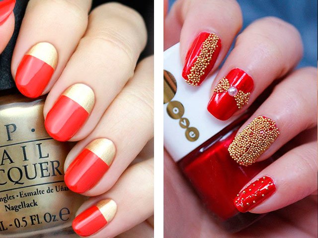 Absolutely any shade looks beautiful with gold. Gold works wonders, especially on nails, beautifully combined with gold jewelry on the fingers.