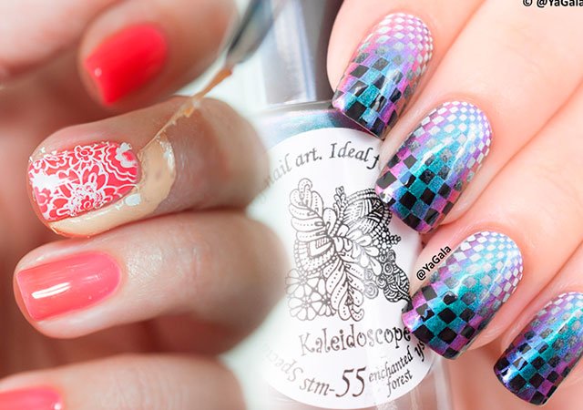 For stepping, gel polish is used as a coating on which stamps are applied. The main advantage of stamping on gel polish is the repeated application of drawings, without the need to paint the nails, applying a new layer with ordinary varnish, if the picture is smeared and it needs to be re-applied. The base coat of gel polish or shellac remains. But, when applying the stamp to the surface of the nails, coated with gel polish, there are some secrets: