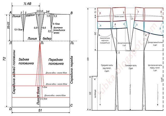 On the YouTube channel there is an excellent master class in which it is shown step by step how to properly cut the material to create the skirt that you want. Having studied the pictures and photos on the Internet, having decided on the model (it can be on an elastic band and a yoke, with a slot, with a belt and a lining, as well as without darts and with them), independently cutting a skirt and its details will not be difficult.