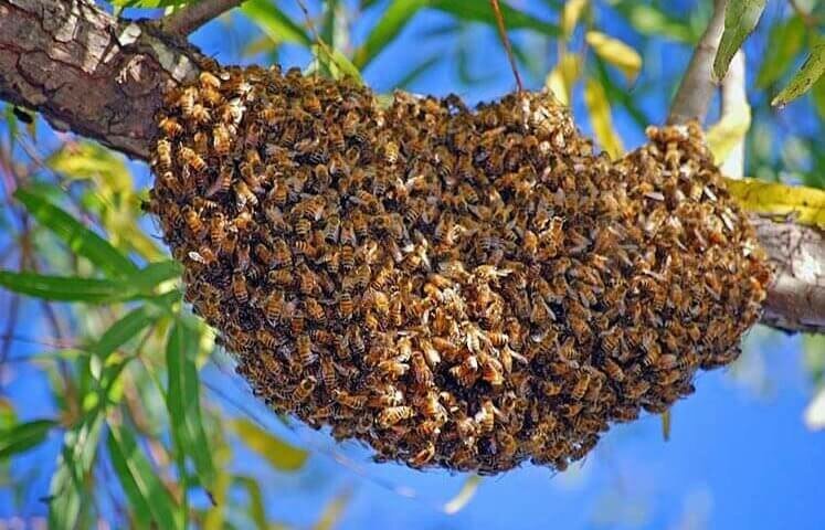 Landfill swarm. It happens that at the same time several swarms come from different families at once. Initially, one sits on a branch, then another swarm sits on it and so on until five. They literally fall on top of each other. It turns out just a huge swarm, the weight of which sometimes reaches 15 kg.