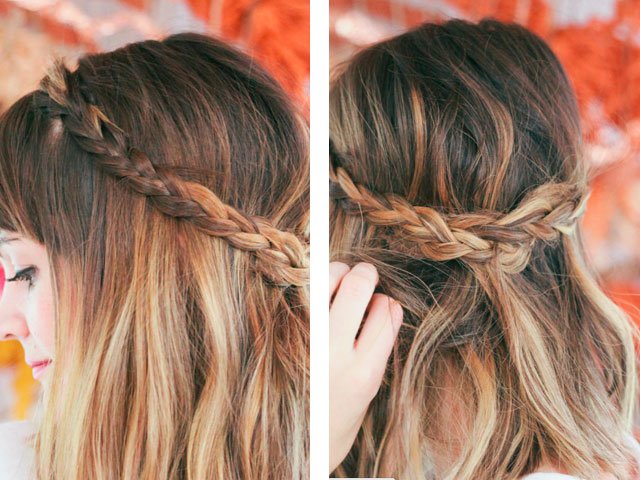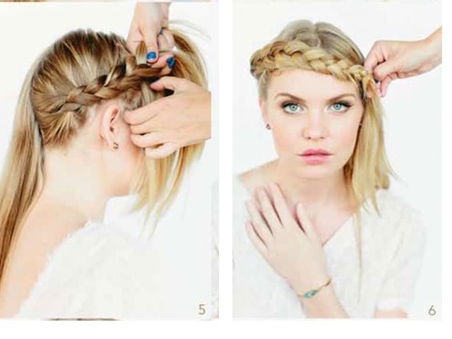 - from the selected lock to weave the French braid to the level of the eye in a circle around the head;