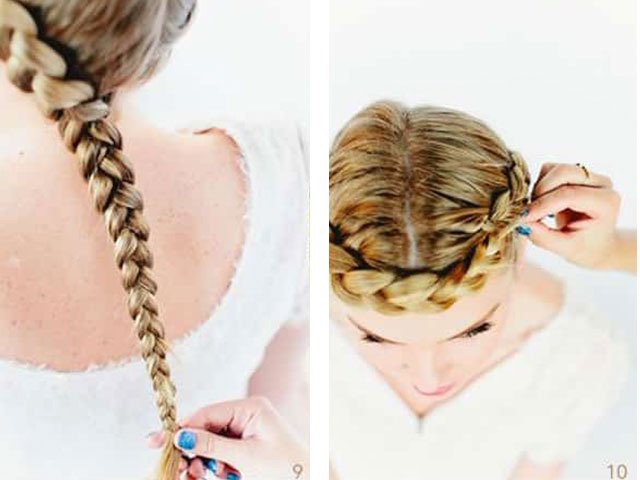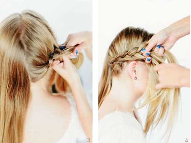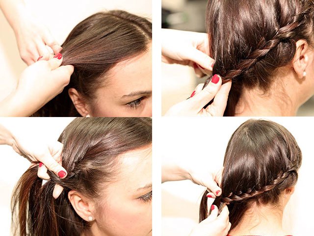 - from the rest of the hair weave a classic Russian braid with a lateral slope (of three or four strands) and weave the resulting braid into it, as shown in the photo.