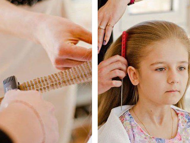 • comb the hair and part with a hair extension on one side;