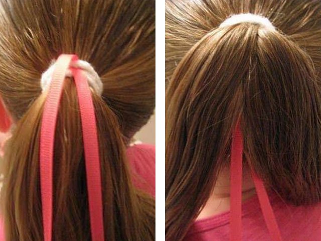 4. Fasten the pigtails with tape at the base of the tails, leaving the ends loose (5-10 cm).