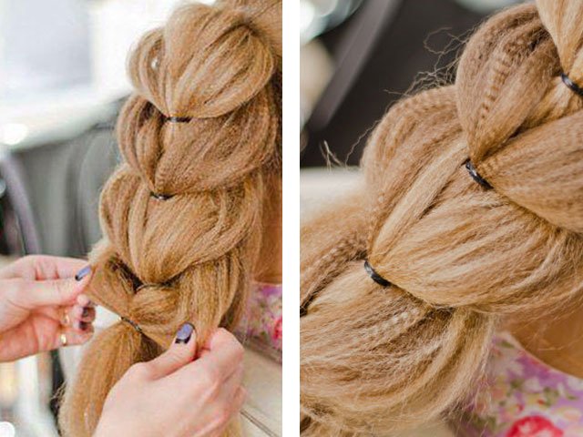 - the rest of the pigtail weave with a regular pigtail (three-strand);