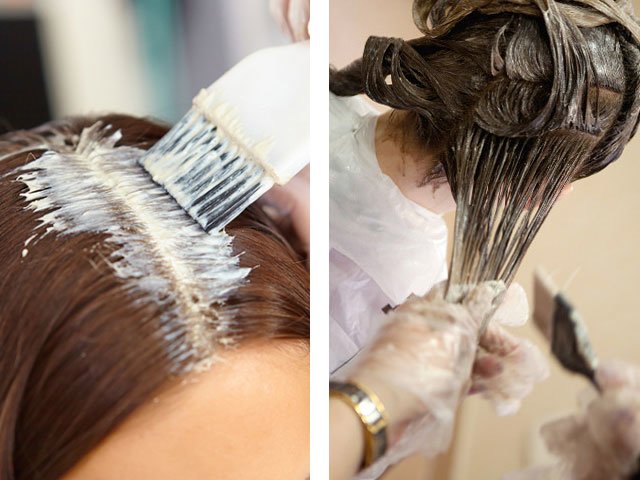 - We mix the root paint with an oxidizing agent (if there is no gray hair 3%, if there is 6%. A nine percent oxidizing agent is needed only for light paint). apply dye to the hair without affecting the clarified ends.