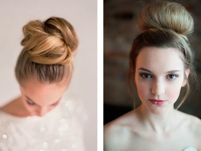 The most common option for creating a beam is a bagel (in the absence of a special gum with a sponge (bagel or donut), you can replace it with a folded toe). The result is feminine, neat and magnificent: