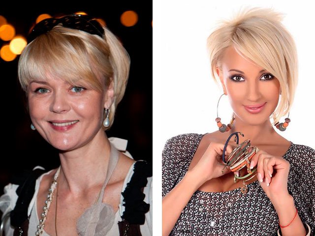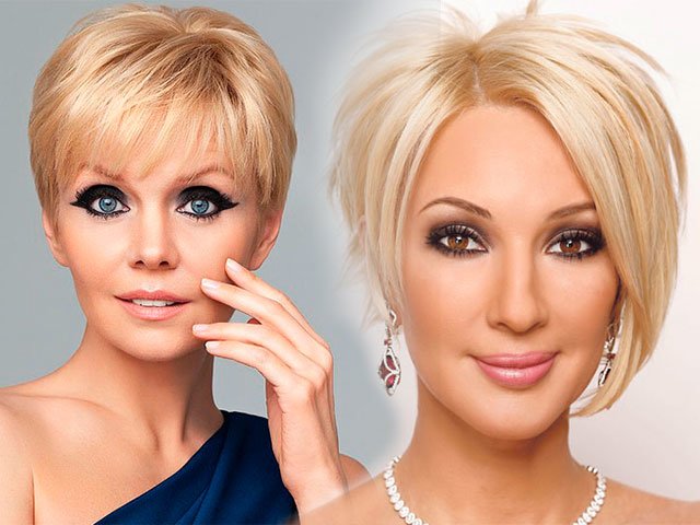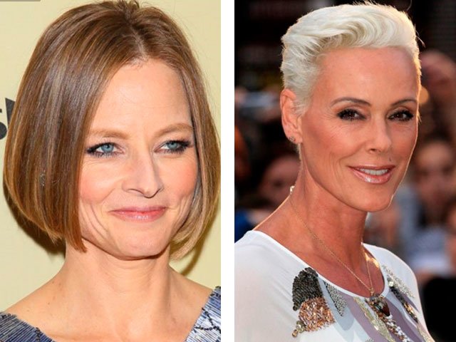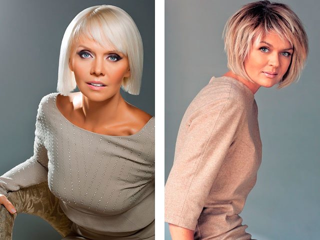 A very short haircut with massive bangs will hide imperfections on the forehead and give the image a little peppercorn. Experiment and make an asymmetric option, but it needs special care. A classic square is suitable for a lady who prefers classics and clothes.