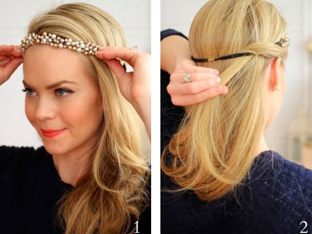 Hair is not attached with an elastic band, but curled to your taste and decorated with a bright detail to diversify the classic simplicity of this styling. Delicate hairpins with beads or pearls are suitable for a wedding celebration, and bright hairpins are suitable for girls and preschool children.