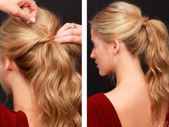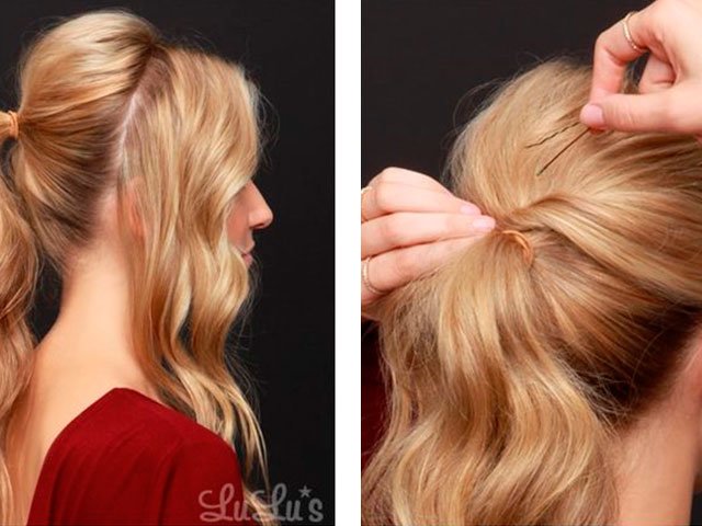 For a high hairstyle, first collect the curls in a high tail, then fasten the hair with hairpins and wrap it back, also securing it with hairpins, curling the roller. Stretch the resulting volume on the sides and again secure with hairpins. Fix with varnish so that the hairstyle does not fly apart.