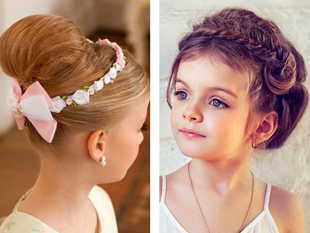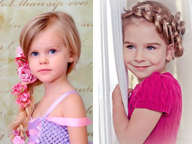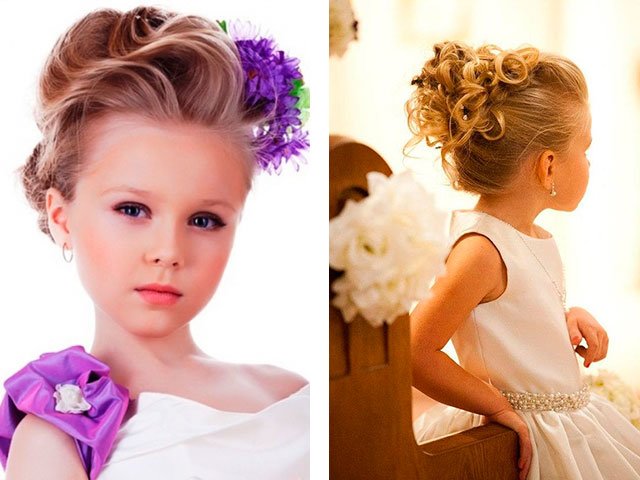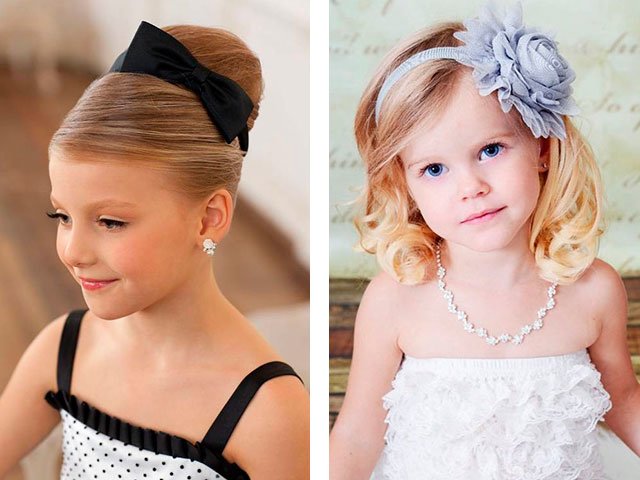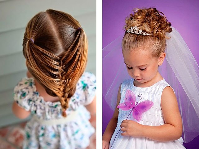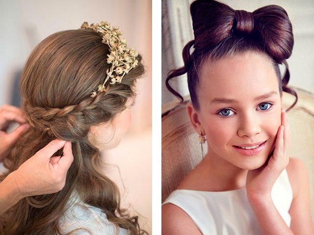 Today, it’s as easy as picking up a good look for girls at a school party, young girls for prom, little girls in kindergarten. In the public domain there are lots of photos of examples with names and types of laying on long, short and medium hair. Air curls, vintage babette, high or low tail, styling with spikes, diadem, loose hair, retro and Greek style - all this you can repeat at home, carefully and step by step repeating everything, as in the photo.