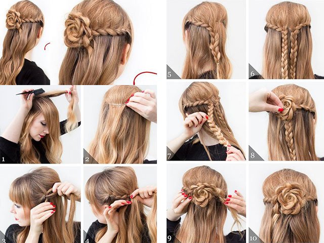 Looking at the photo of the hairstyles made by your own hands, you understand that they can actually be done independently, the main thing is to do everything in stages, as in the photo.