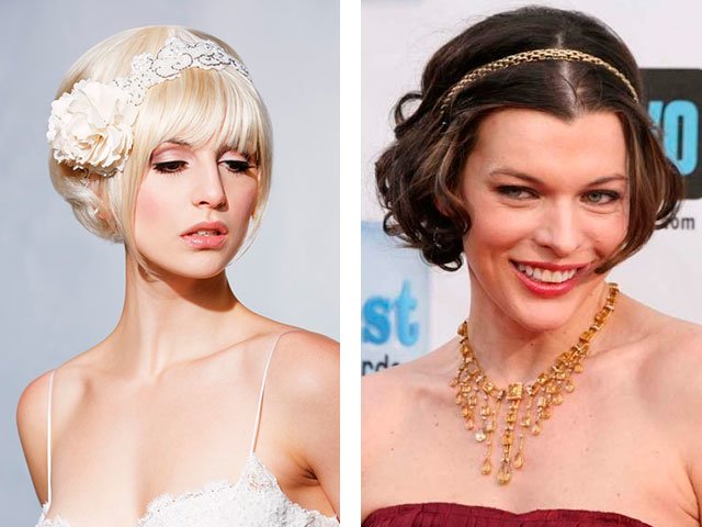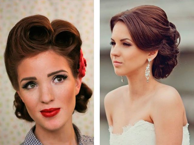 Evening retro for short curls is done using ordinary varnish, mousse or foam. Divide the head into the parting side or in the middle, comb the hair on the top and fix with varnish. Comb the side curls by the ears or smooth on the cheeks, fixing with varnish.