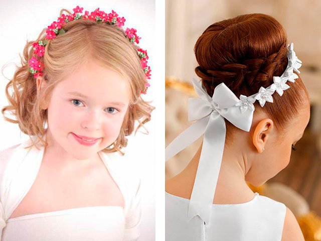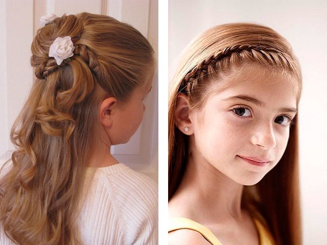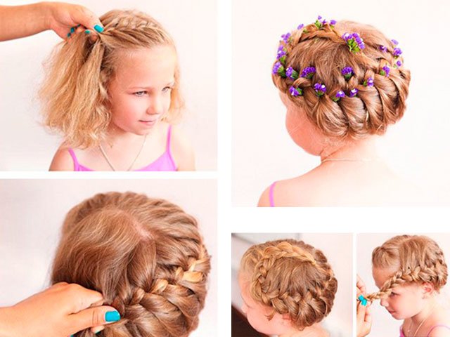 At home, you can always start with a step-by-step reproduction of simple hairstyles with weaving, beautiful styling with wound curls or an ordinary loose hair, decorated with ribbons and flowers and other decorations.