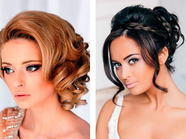 If this is your first time curling your hair, then see the detailed photos. Whatever hairstyle you take, it requires clean and dried hair, then you can start wrapping it from the back of the head, gradually moving to the top of the head. With ready-made large curls, you can do anything. Try to twist the side strands into the flagella, securing with the hairpin with stones on the back of the head or the same flagella, only fasten the tail to the crown. Volumetric tail, free weaving, delicate bunch - consider each of the options that will match your mood and image at the graduation.