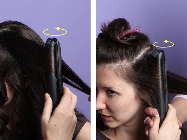 Curling iron is also possible to make a beautiful styling. Large or medium strands are at your discretion. Treat dry and clean strands with varnish or styling spray and divide into zones throughout the head. At the back of the head, wind more thin strands, slightly less on the sides, and the largest ones in front. With the ironing you can repeat the same thing, the only difference is that they must be thin and wound up to the very roots, without overexposing, so as not to damage the surface of the curl.