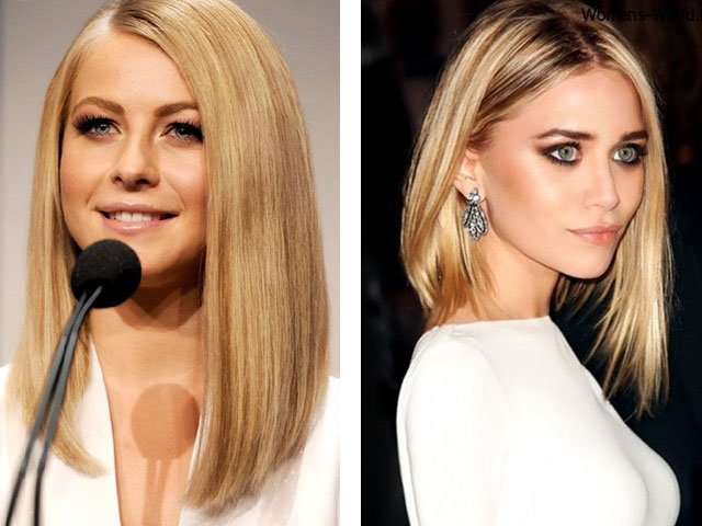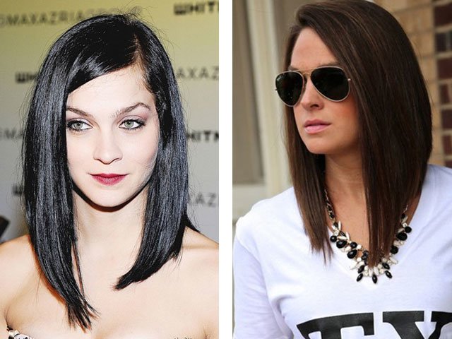 The ideal middle ground for those women who do not want to part with long hair, and at the same time want to cut their hair short. Such a rack with an extension is perfect for confident ladies who do not like to spend a lot of time on their hair. Great for all types of faces, whether round or oval. Front hair can be much lower than the shoulders, and this haircut can be done in different techniques - asymmetrical square with lengthening or classic straight.