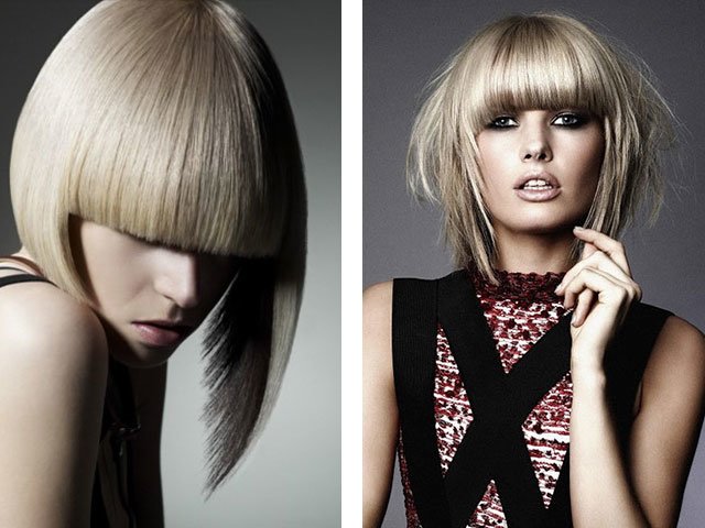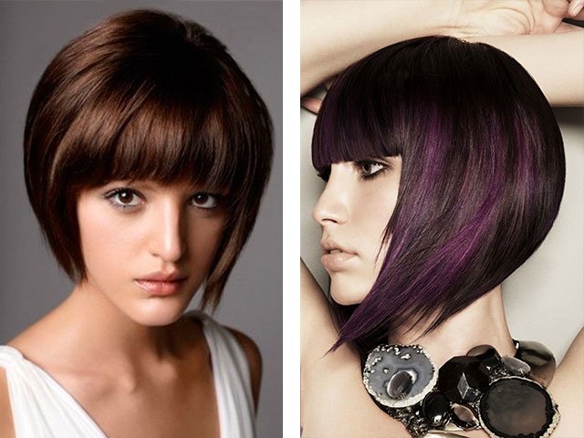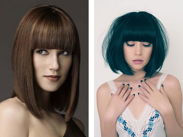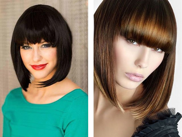 Haircuts bob with bangs are of interest to many of the fair sex. Thick straight front strands look quite extravagant and visually lengthen the face.