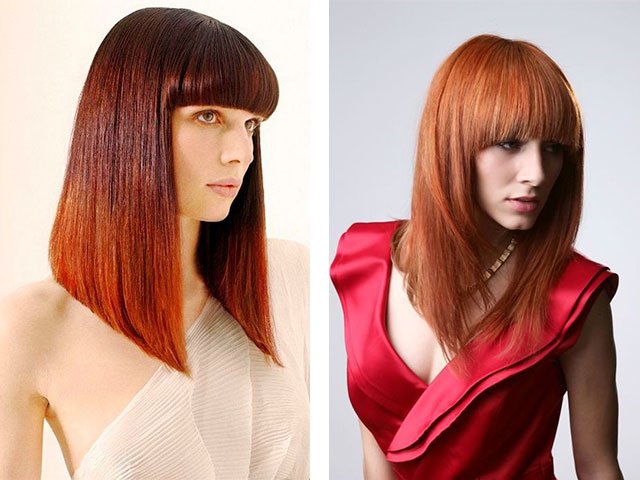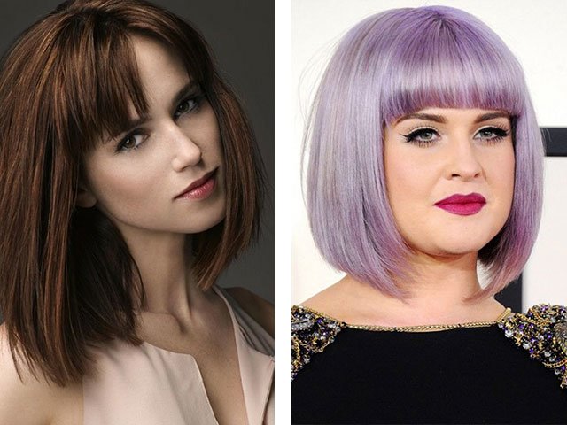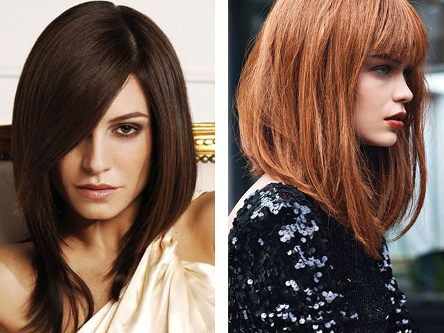 Numerous photos will help you choose the most successful haircut design option for any type of face, figure, color. Medium and long hair can be cut under a bob long with a bang. There is also a photo showing modern design options from eminent stylists.