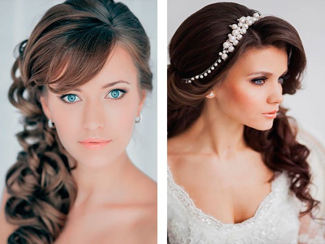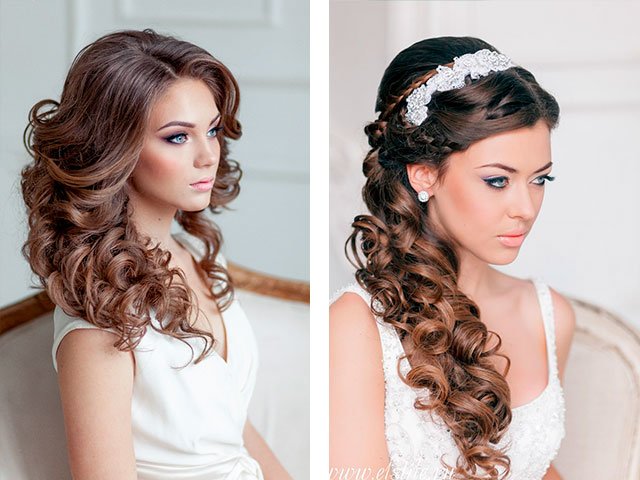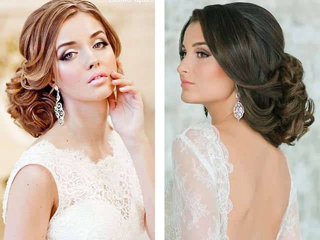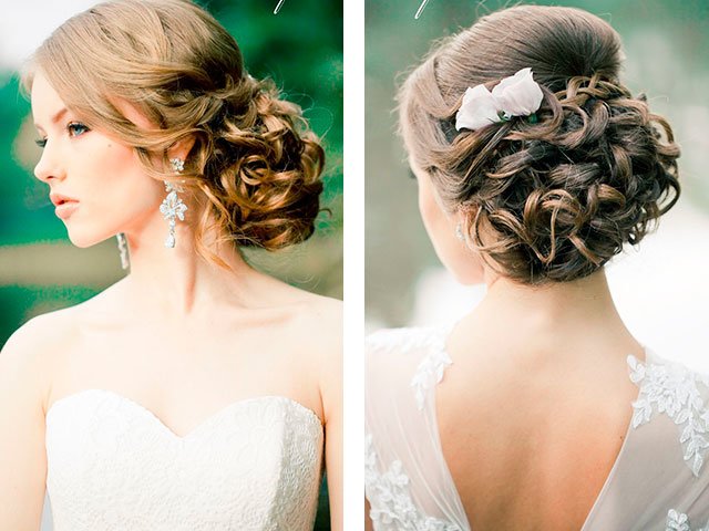 [...] Fashionable festive hairstyle for a wedding is flowing curls and stylish high options. [...]