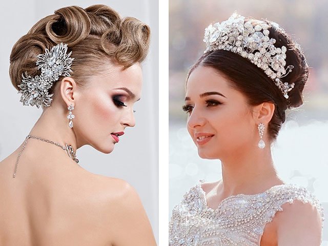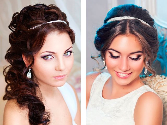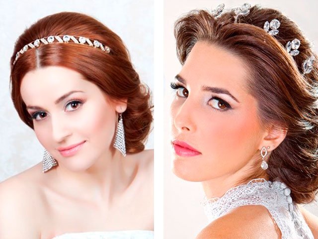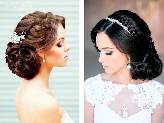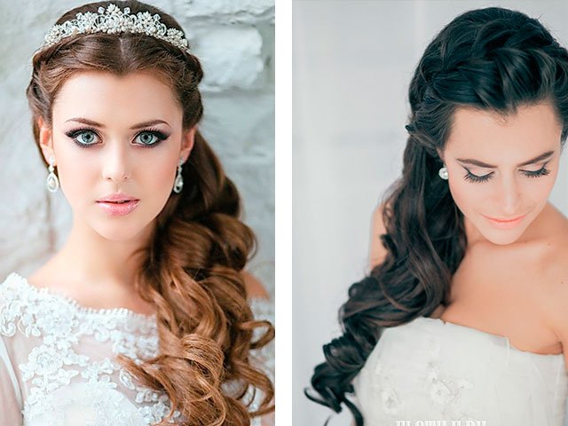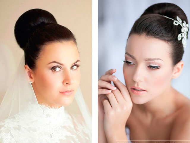 Refuse from the magnificent voluminous creations will have ladies with a round face (for full girls they are not suitable). You can opt for smooth with various jewelry (diadem or crown).