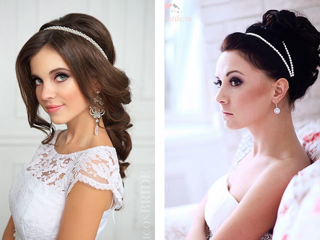 If you want to be a Greek goddess, hairdressers have come up with hundreds of options for hairstyles for long hair in the Greek style. The curls themselves are often wound on a curling iron and collected in a low bun or braid. The bezel can be chosen with stones, pearls, sequins. As a rule, the hoop follows the design of the dress.