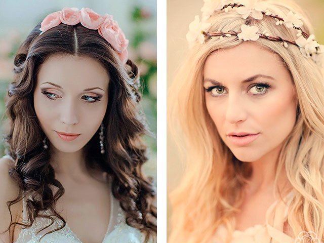 Wedding fashion does not stand still. Today, more and more girls with long hair choose wreaths of natural flowers and headbands. In this case, the curls remain straight or wound on a curling iron with a large diameter. The times of “heavy” and “varnish” hairstyles are behind. Only natural and airy options.