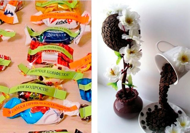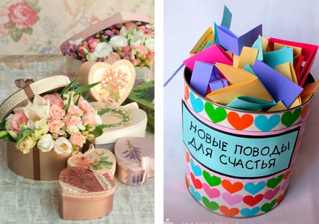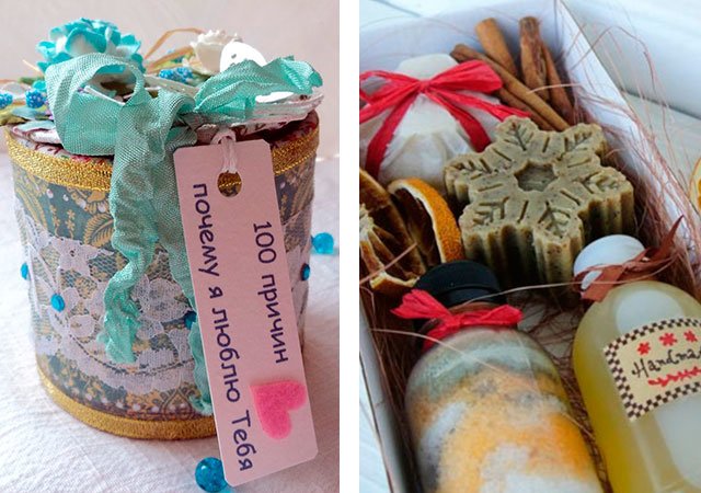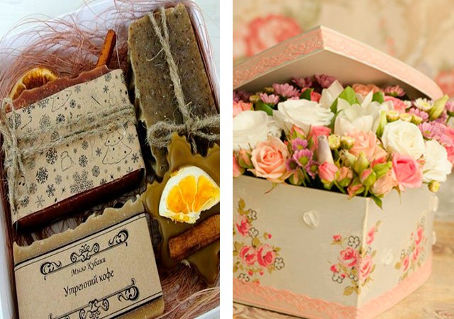 These options are suitable for a wide age group (for a girl from 10 to 50 years old), of course, require certain investments, but insignificant: the average cost is from 90 to 300 rubles, moreover, with the ability to order in an online store with home delivery. Do not forget to take care of the beautiful packaging, which you can also do with your own hands and decorate with ribbons. As the latter, you can use anything you like: rope, lace, serpentine, etc.