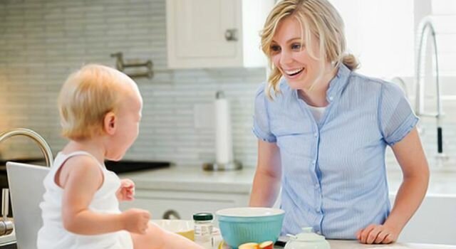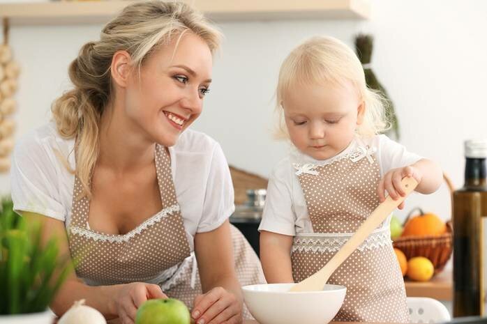 Good: show your baby how to stir the cream cake with a spoon that you bake. Another positive example is to teach sifting flour.