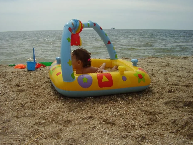 In this case, only one thing will help - an inflatable pool. Yes, yes, you need to take a pool with you and fill it with fresh water. Thus, the baby will not only not be hot, but also he will be able to play in the water.