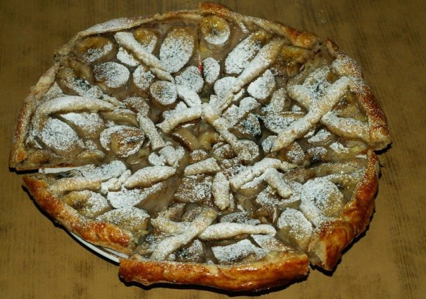 Step 9Ready banana pie from puff pastry cut into pieces and sprinkle with powdered sugar.