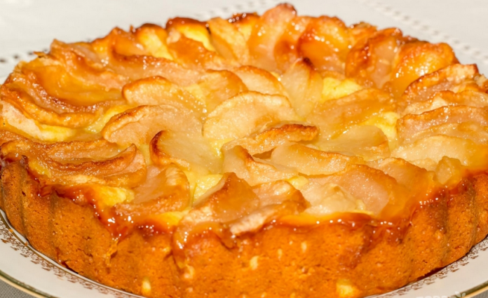 Step 8 Put apples on the dough. Lubricate them with glaze. Bake the cake in the oven for 45 minutes, at t 180 degrees.
