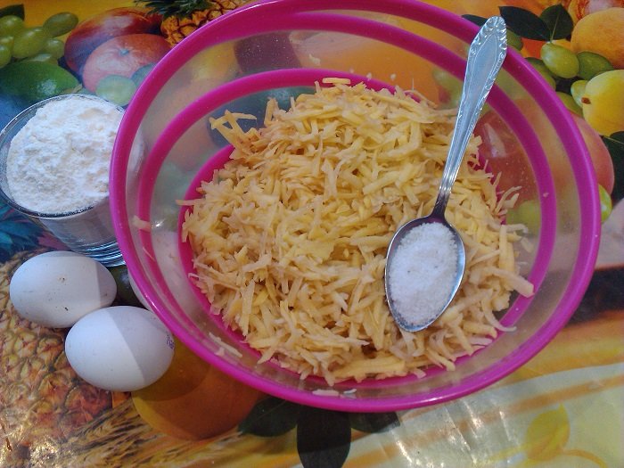 Step 1. Peel the potatoes, wash and grate on a coarse grater.