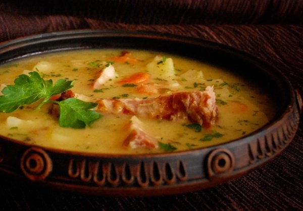 Step 7 When the potatoes are cooked, add cooked peas, chopped celery and carrots, fried brisket with onions. Salt, pepper to taste. Give a couple of minutes to boil.