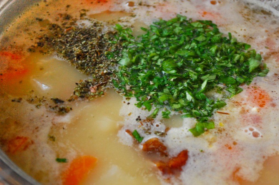 Step 9 Add chopped parsley, garlic and mashed marjoram to the soup. Salt to taste.