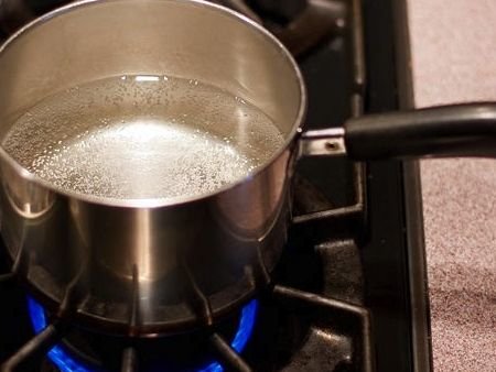 Step 1. Pour water into a ladle and bring to a boil.