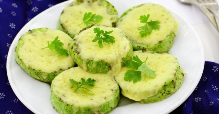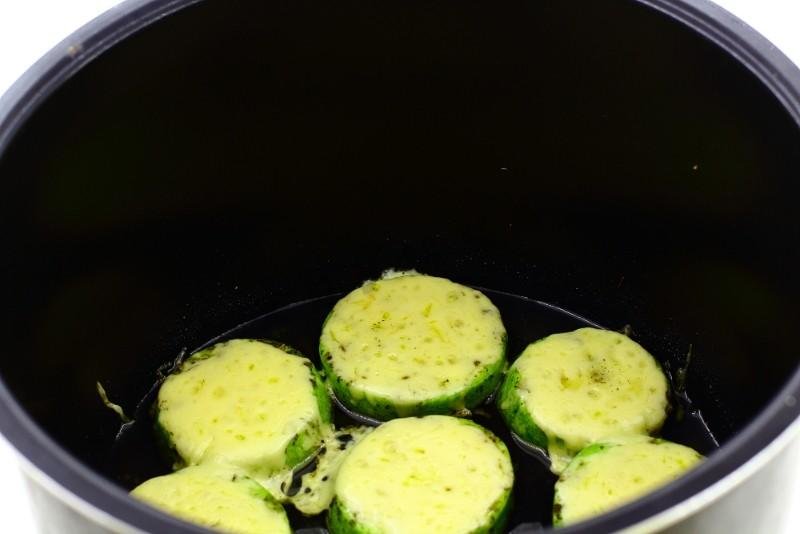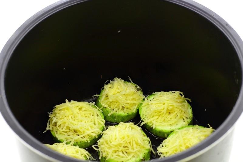 Step 4 On each round zucchini put a little cheese. Turn on the baking program for 20 minutes.