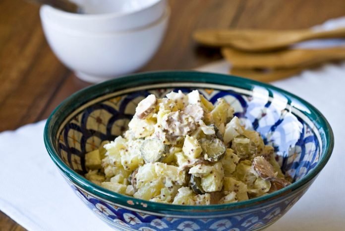Step 1. Rinse potatoes thoroughly and boil until cooked. Cool, peel and dice.