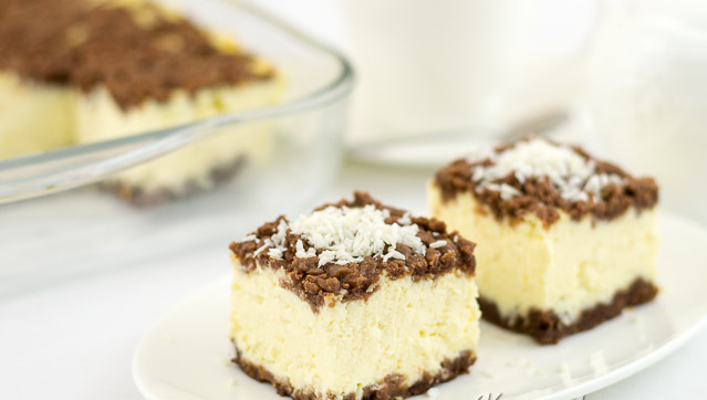 Step 5 Add eggs, sugar, starch, mix well with a blender. Grains of cottage cheese should not be felt in the finished mass! Add coconut flakes, mix with a spatula. If you don’t want to add coconut flakes, then just exclude it, it will turn out delicious anyway.