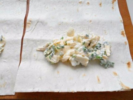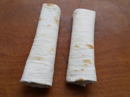 Step 4 Roll lavash with a tube, bending into the edges. Leave the rolled pita bread for 3-4 minutes to soak a little stuffing.