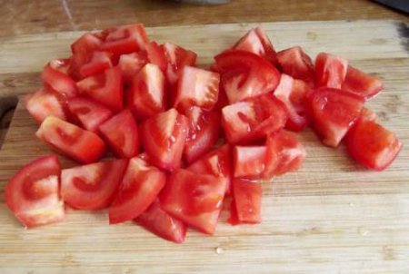 Step 2 Cut tomatoes into large cubes, season with salt and pepper.