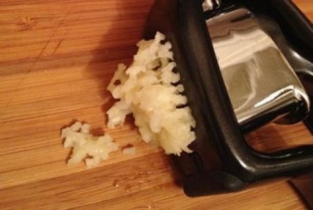 Step 8 Peel and pass the garlic through a press.