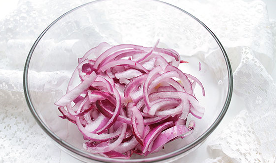 Step 3 Peel the onion and cut into thin half rings.