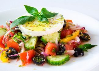 Greek salad with peppermint and oregano
