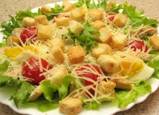 Caesar salad with chicken and crackers, classic