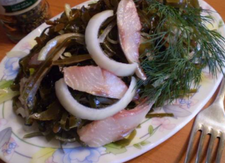 Salad of seaweed, pickled herring and onions