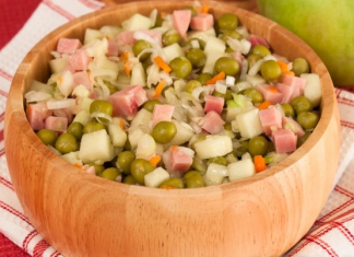 Salad with sauerkraut, ham and apple