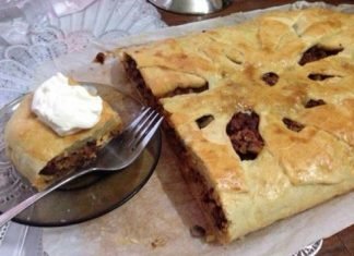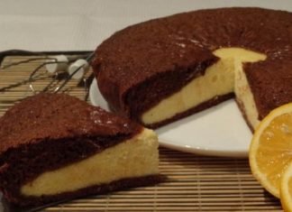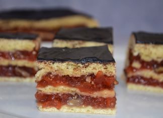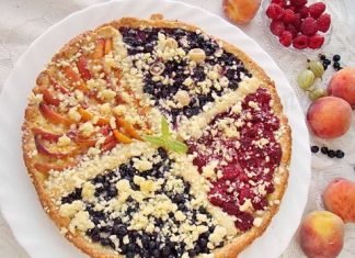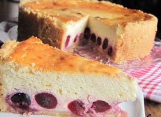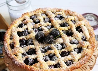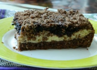 Shortbread Chocolate Cake with Blueberries and Cottage Cheese